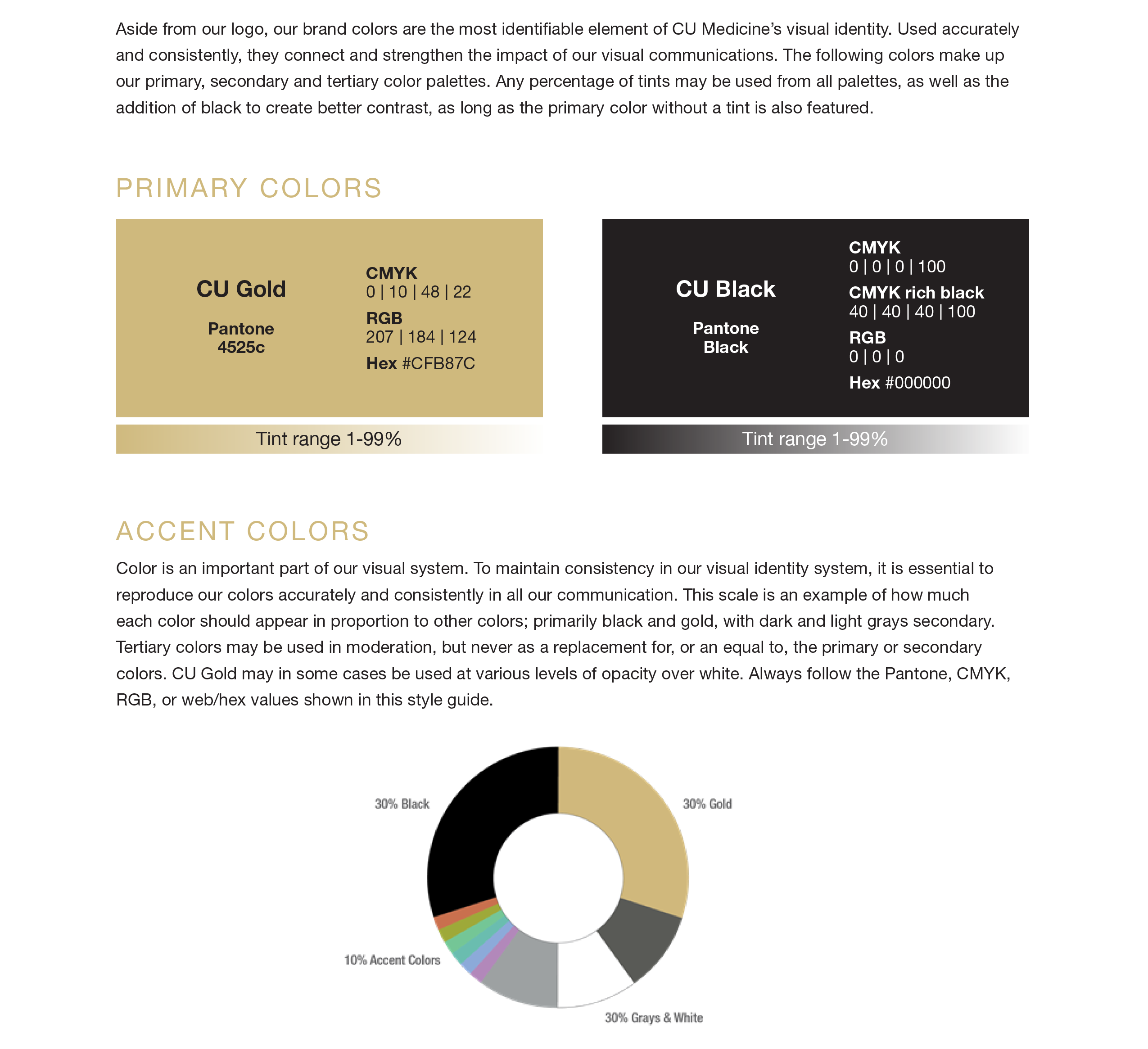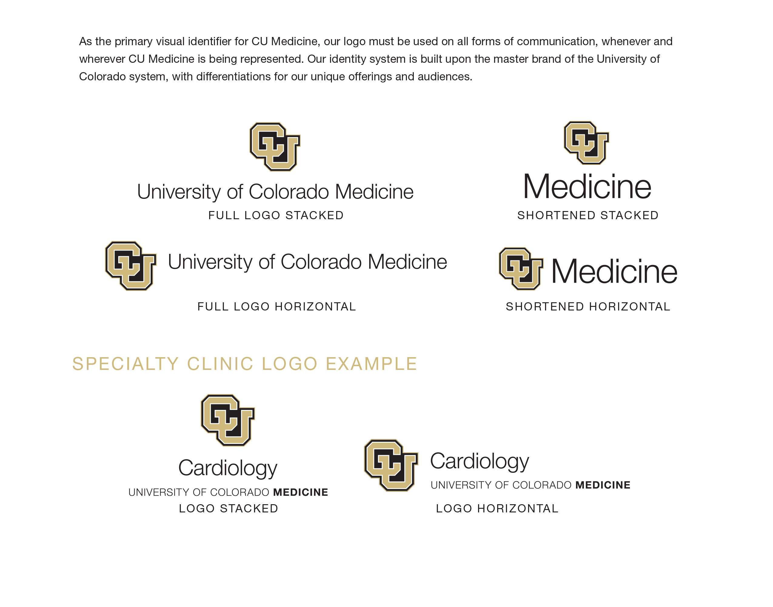 Using consistent visual elements to represent University of Colorado Medicine is important. By taking an active, coordinated role in visually identifying ourselves, we build awareness and comprehension for every entity that represents CU Medicine.