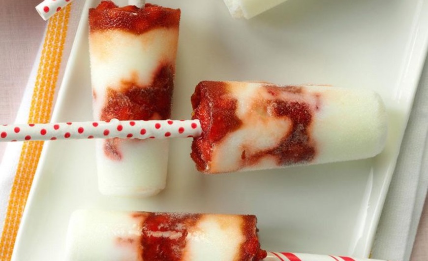 - Spoon 2 tablespoons yogurt and 1 tablespoon strawberry mixture into each mold or paper cup. Repeat layers. Top molds with holders. If using cups, top with foil and insert sticks through foil. Freeze until firm.